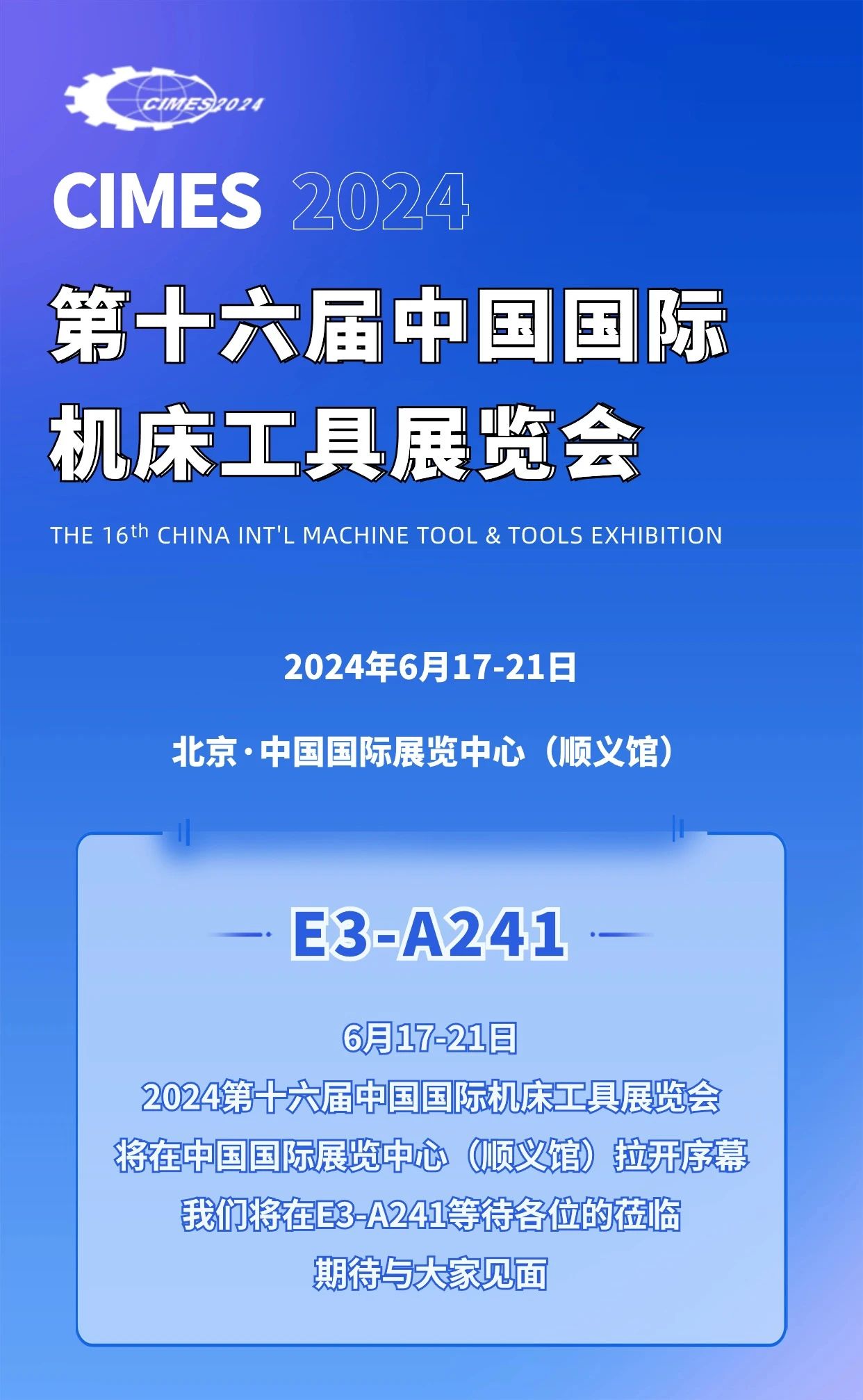 【展会邀请】2024中国国际机床工具展即将开幕,我们在E3-A241等你来约!